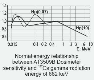 能量靈敏度(662keV) Hp(10) 15keV...1.5MeV 1.5keV...10MeV Hp(0.07) 15keV...300keV(AT3509B,C) |