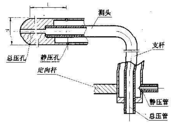 皮托靜壓管(皮托管)是由一個垂直在支桿上的圓筒形流量頭組成的管狀裝置。本裝置在側壁周圍有一些靜壓孔,頂端有一個迎流的全壓孔。它能測出壓差,并根據壓差確定流體中某處的流速,由流速與面積的乘積計算出流量。